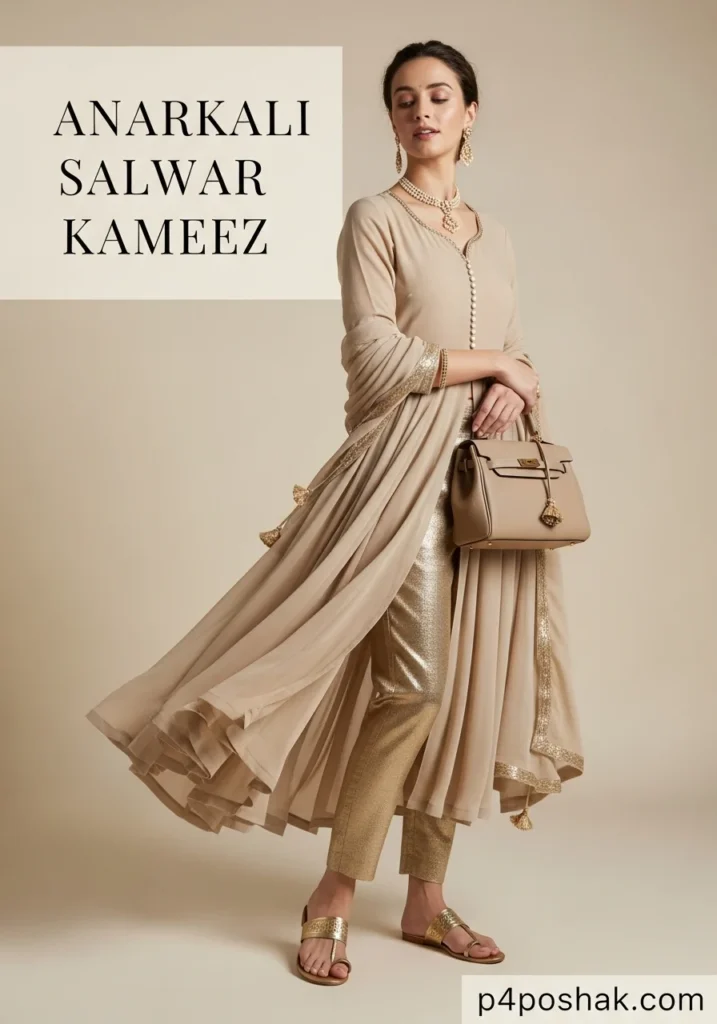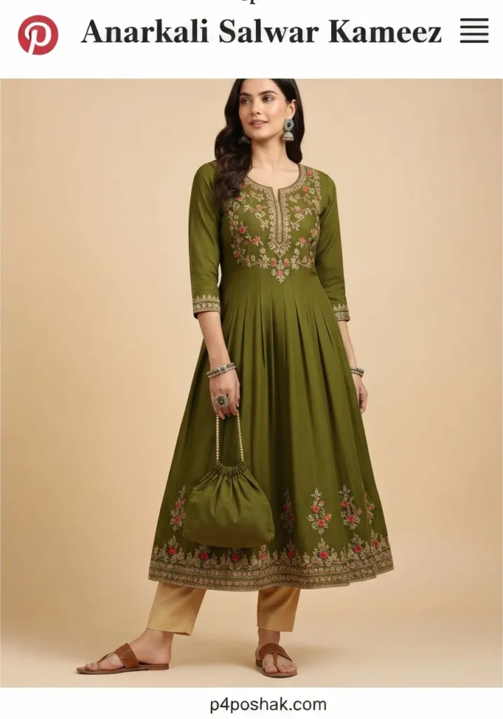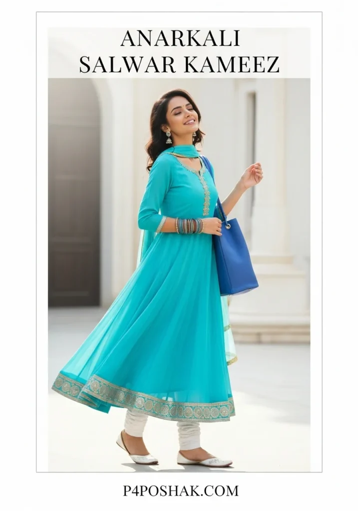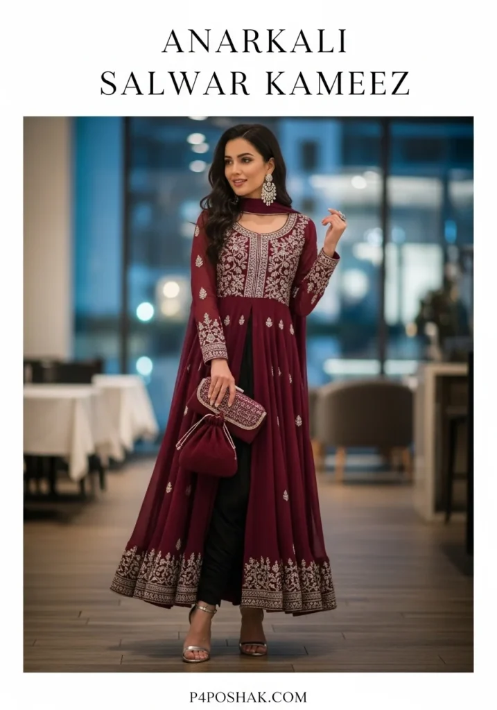 Hi, I’m Dimple Mali, a fashion blogger at P4Poshak, your go-to destination for authentic Indian fashion inspiration. At P4Poshak, we celebrate the art of dressing beautifully while staying connected to our roots. This post is close to my heart because the Anarkali Salwar Kameez is one of those evergreen pieces every woman should have in her wardrobe — it’s the perfect blend of tradition, comfort, and contemporary design.