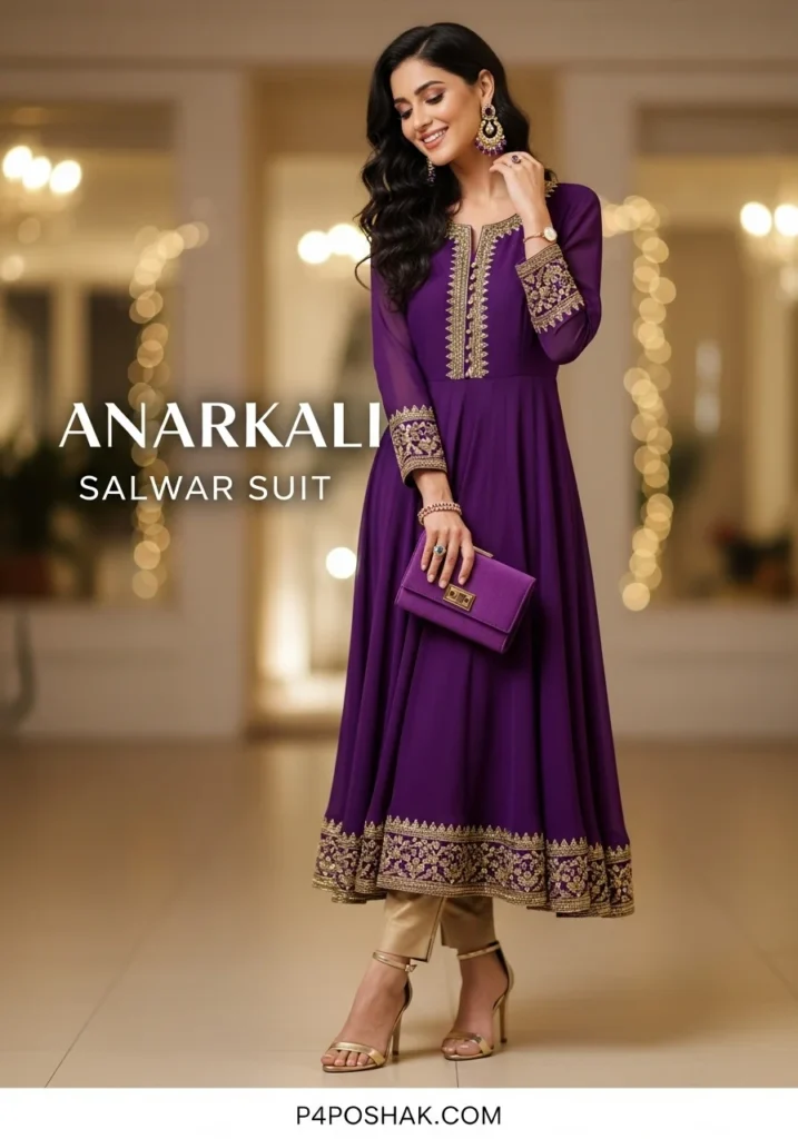 Hi, I’m Dimple Mali, a fashion blogger at P4Poshak! If there’s one outfit that effortlessly blends elegance and comfort, it has to be the anarkali salwar suit. Its flowing silhouette, intricate embroidery, and vibrant colors make it a timeless choice for weddings, festive events, and casual gatherings alike.