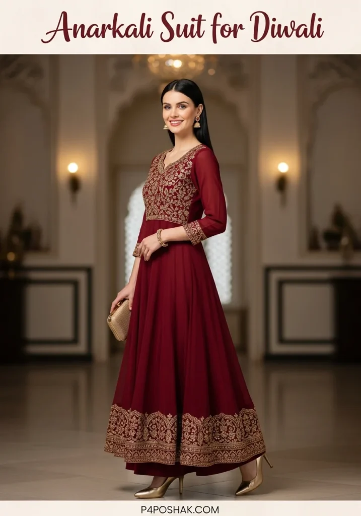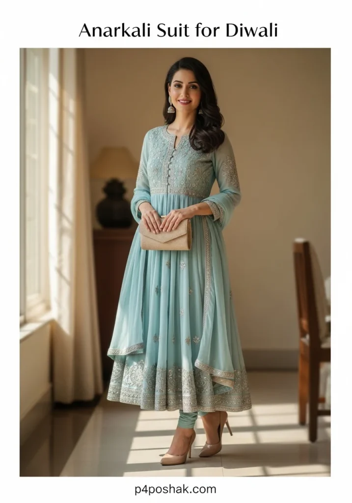 Anarkali suits are timeless, elegant, and perfect for every Diwali occasion—from morning pujas to evening family gatherings. They offer the perfect blend of traditional charm and modern style, making you feel confident, radiant, and festive all at once.