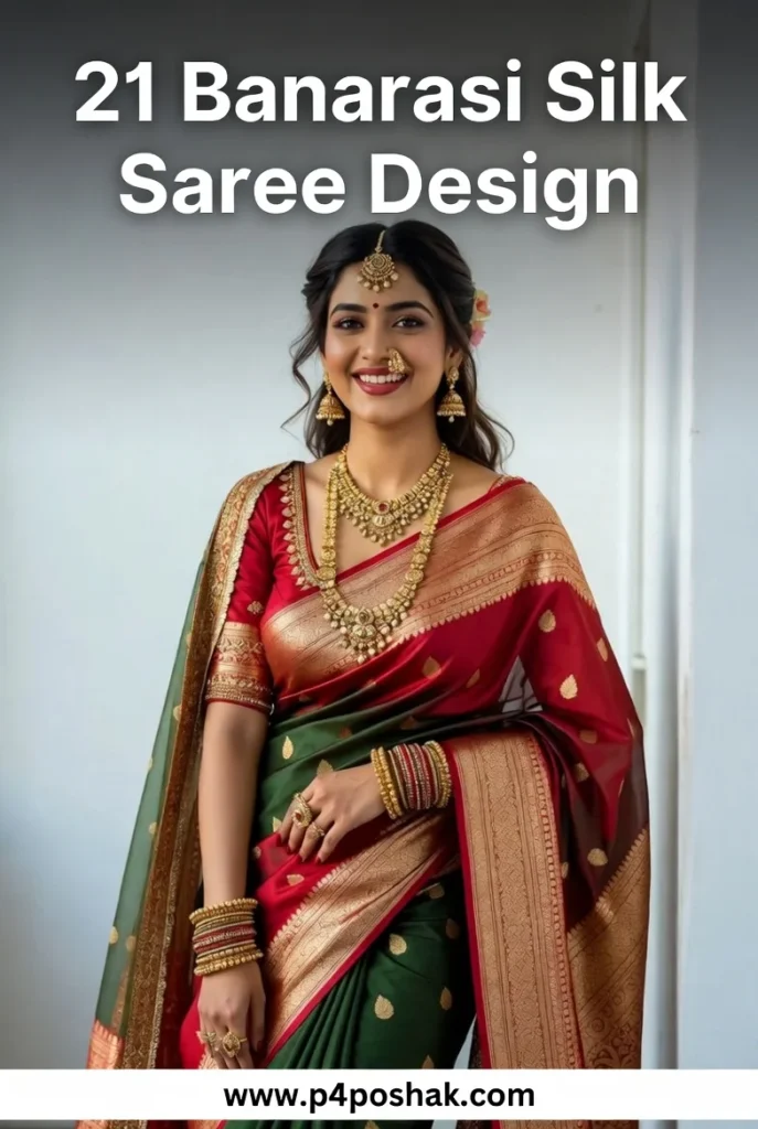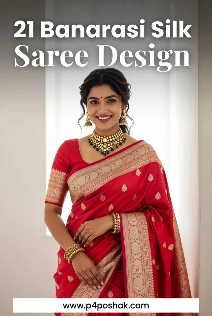 Hi, I’m Dimple Mali, a fashion blogger at P4Poshak. In this post, I’m excited to share 21 stunning banarasi silk saree styles that will elevate your ethnic wardrobe. From classic traditional designs to modern fusion twists, these sarees are perfect for adding elegance, sophistication, and a touch of glamour to any occasion.