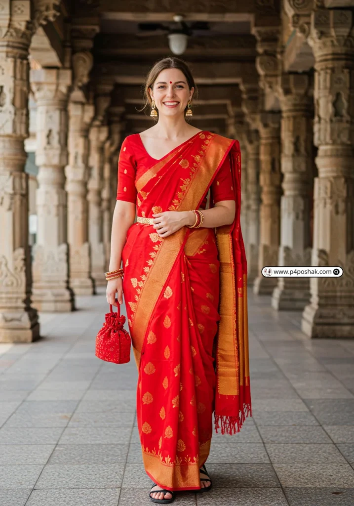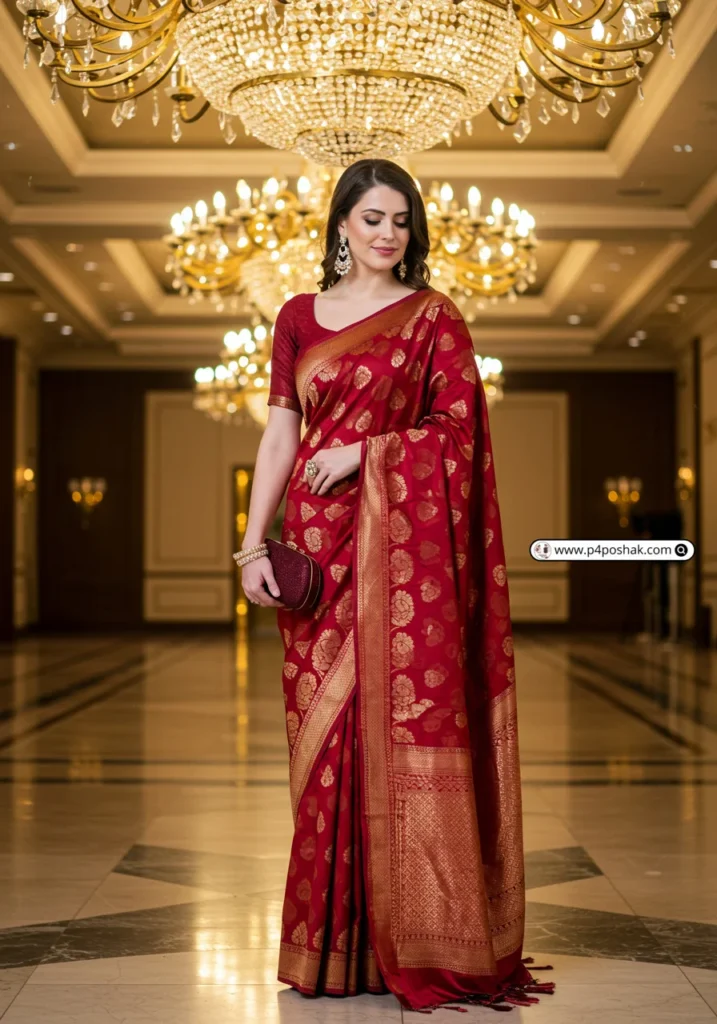 Hi, I’m Dimple Mali, a fashion blogger at P4Poshak, and in today’s post, I’m diving deep into the world of Banarasi weaves. From rich zari borders to contemporary twists, I’ll show you how to style this classic piece for weddings, festive occasions, and even modern-day parties.
