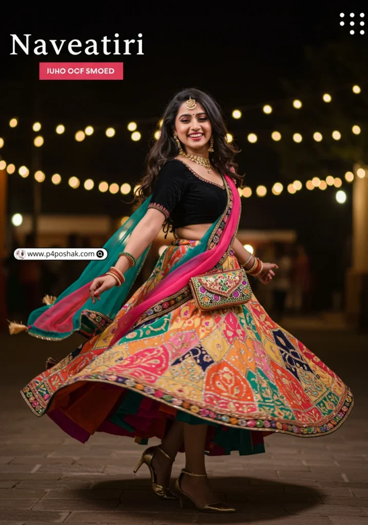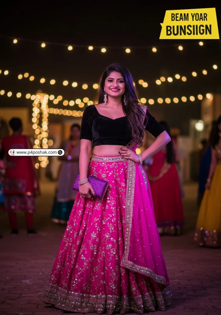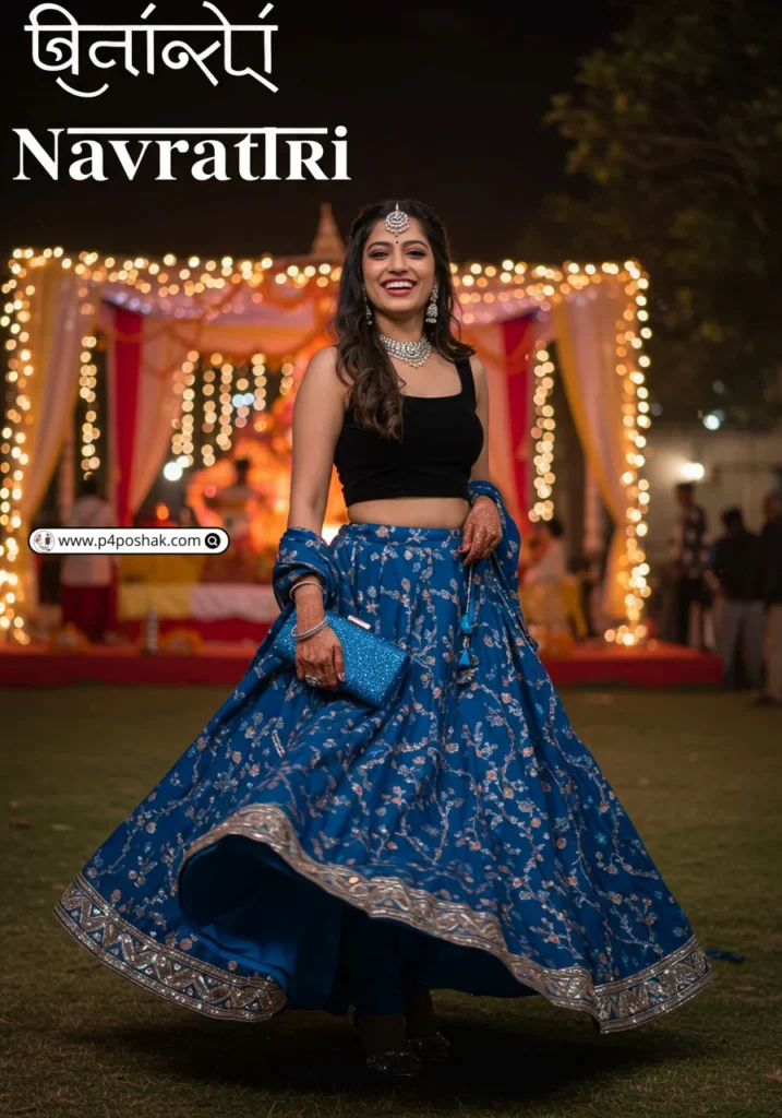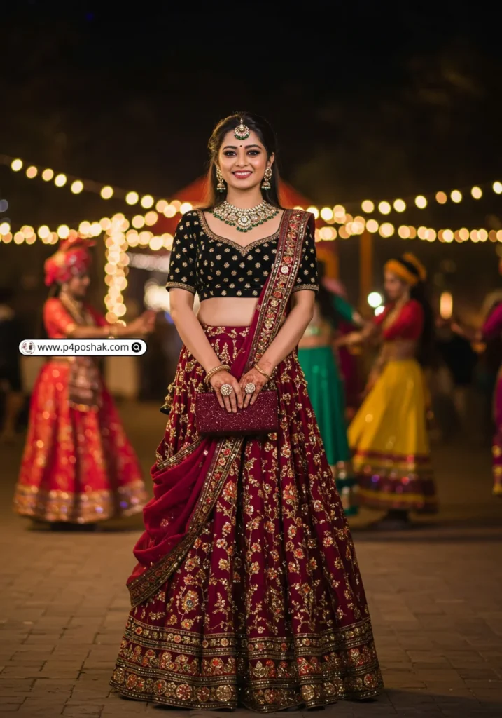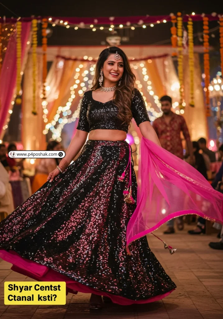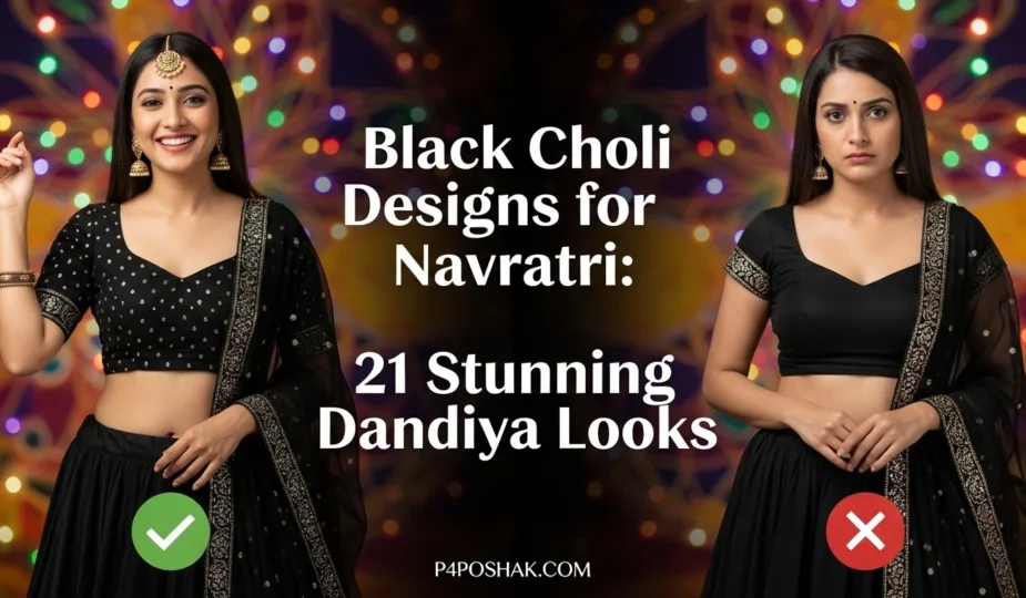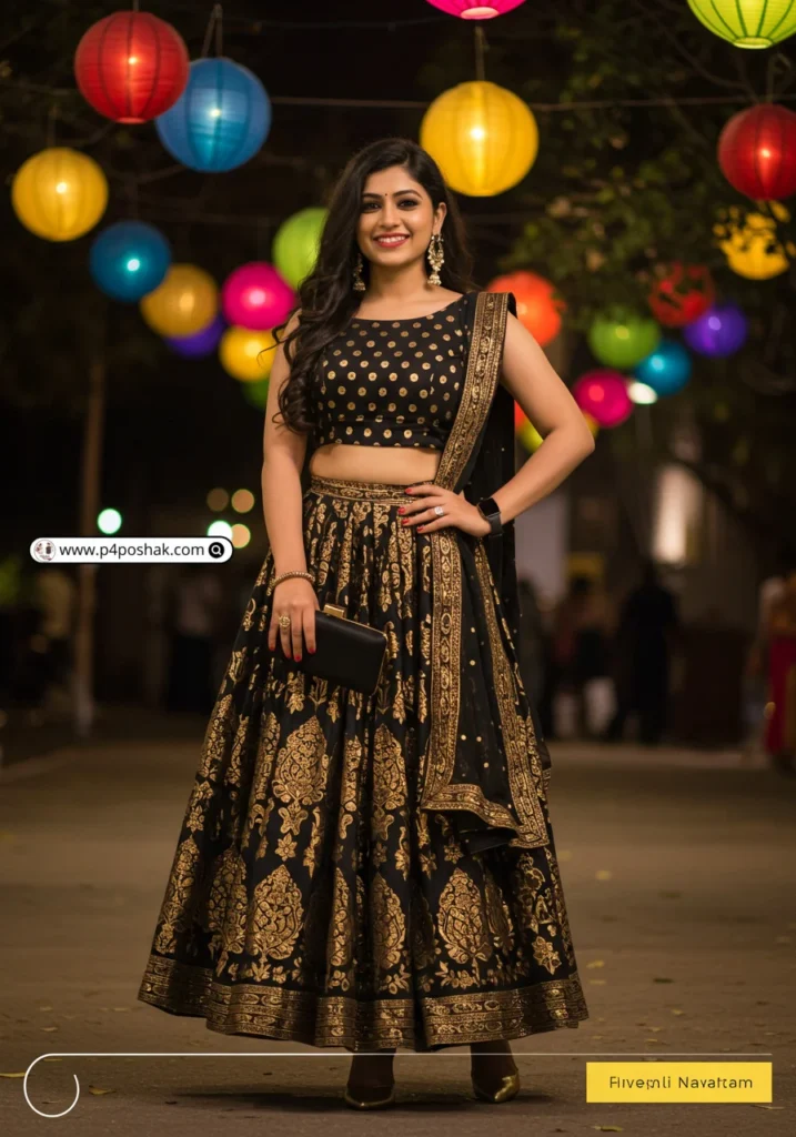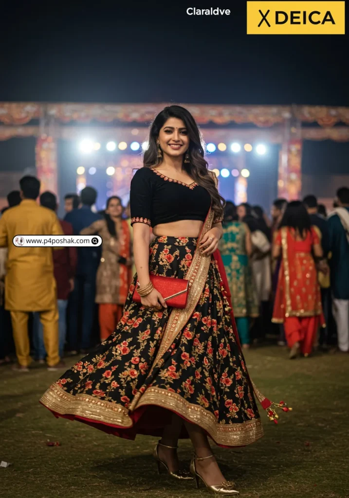 Hi, I’m Dimple Mali, a fashion blogger at P4Poshak, and I’m here to guide you through outfit inspirations that make every Navratri night unforgettable. Whether it’s glittery embroidery, mirror work, or chic fusion styles, the right black choli paired with a flowing lehenga or skirt can make all the difference.