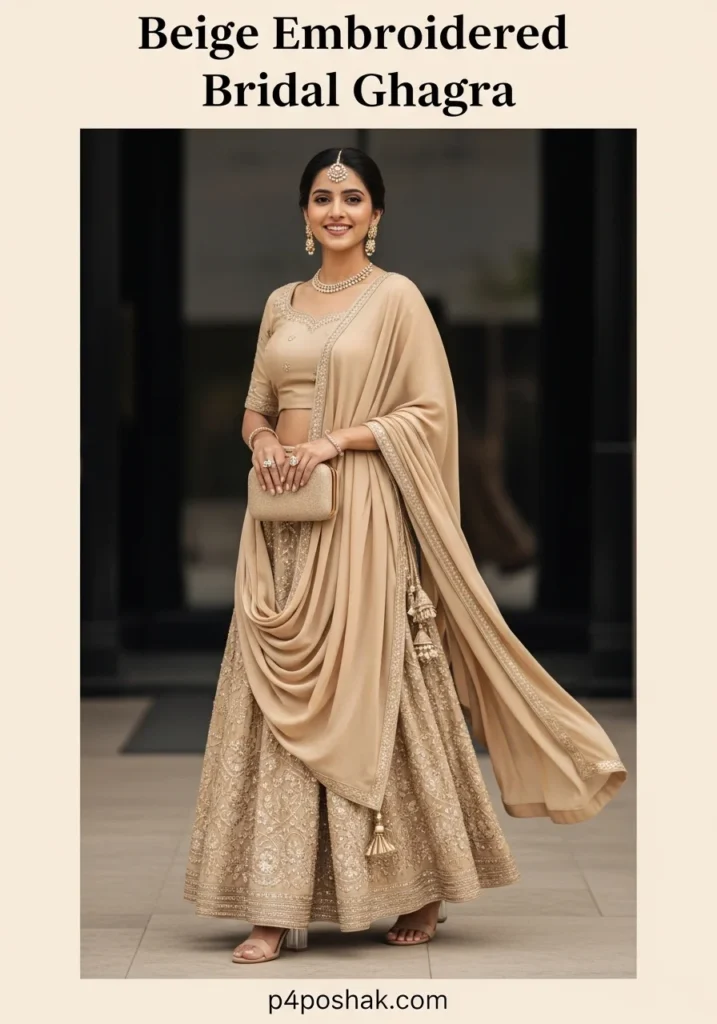 13. Beige Embroidered Bridal Ghagra