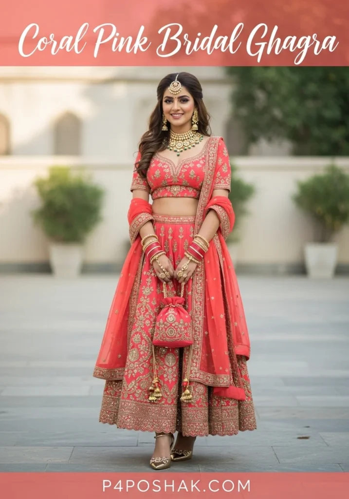 14. Coral Pink Bridal Ghagra