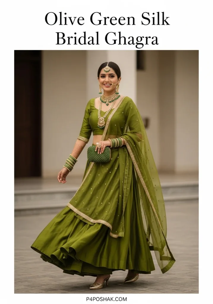 18. Olive Green Silk Bridal Ghagra