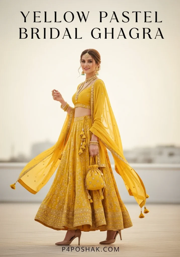 19. Yellow Pastel Bridal Ghagra