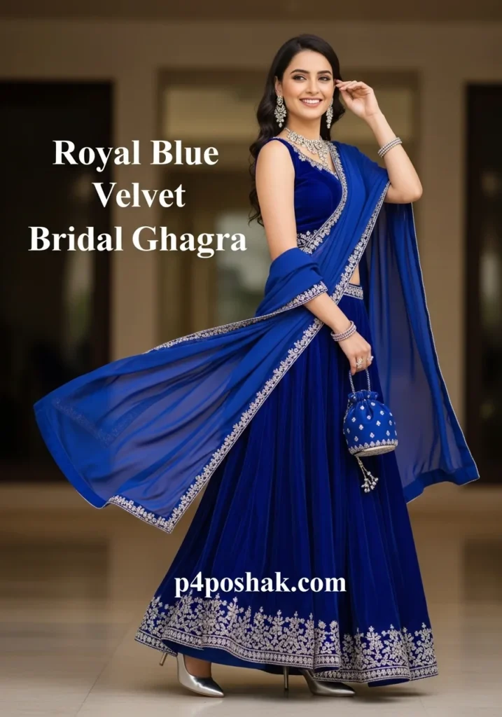2. Royal Blue Velvet Bridal Ghagra