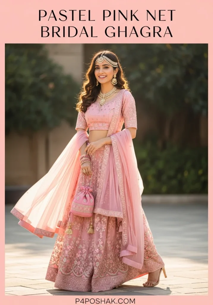 3. Pastel Pink Net Bridal Ghagra