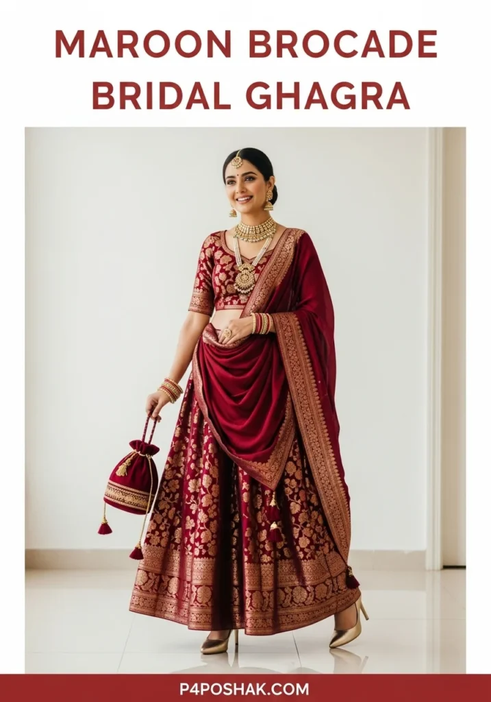 5. Maroon Brocade Bridal Ghagra