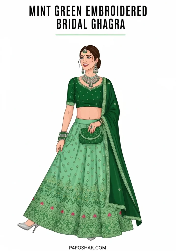 7. Mint Green Embroidered Bridal Ghagra