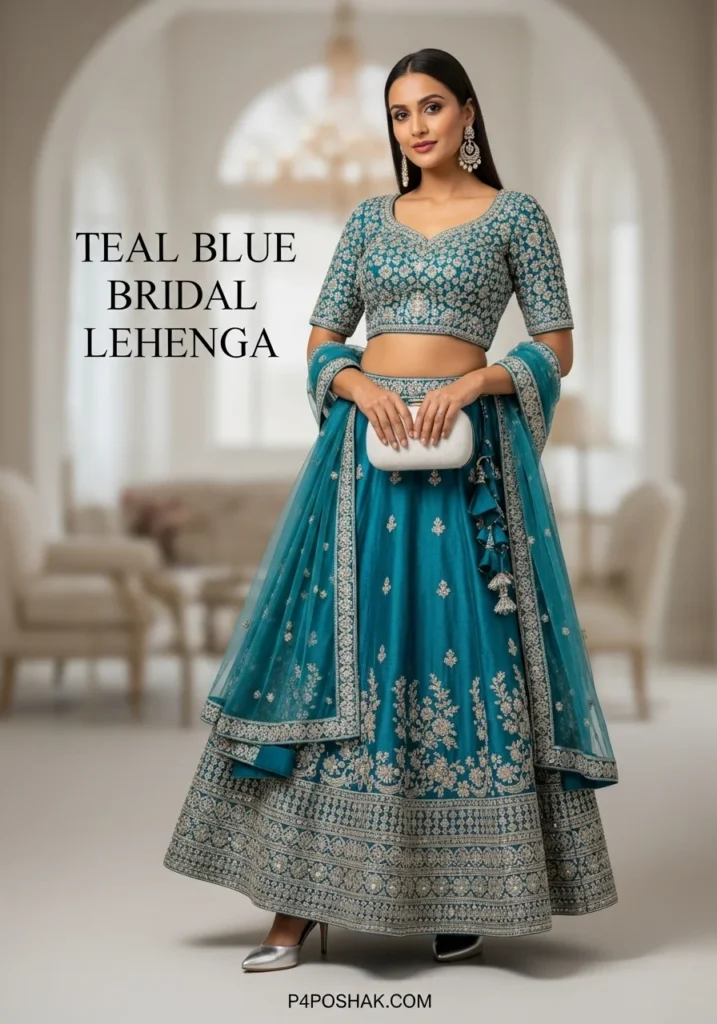 Teal blue creates a vibrant, modern look for brides who want to stand out. Lightweight fabric ensures comfort while dancing or moving. Tip: Pair with subtle silver jewelry for a chic effect.