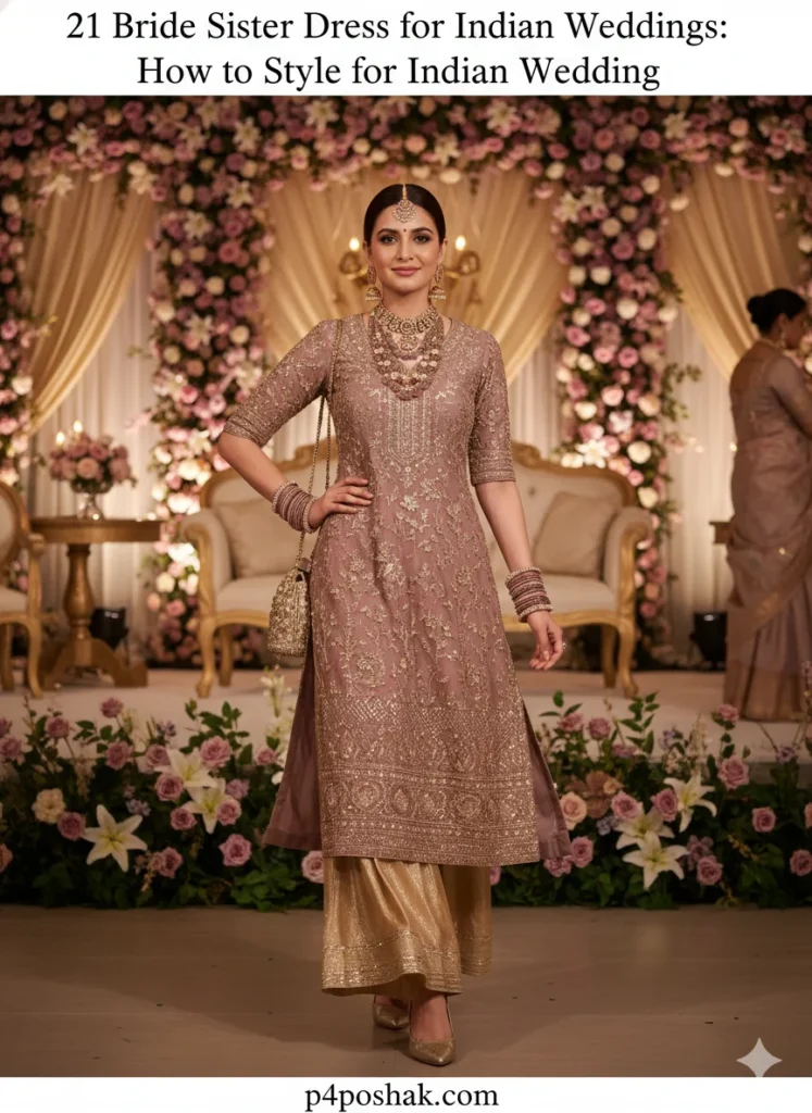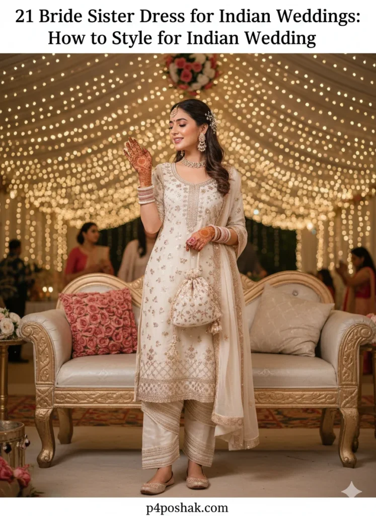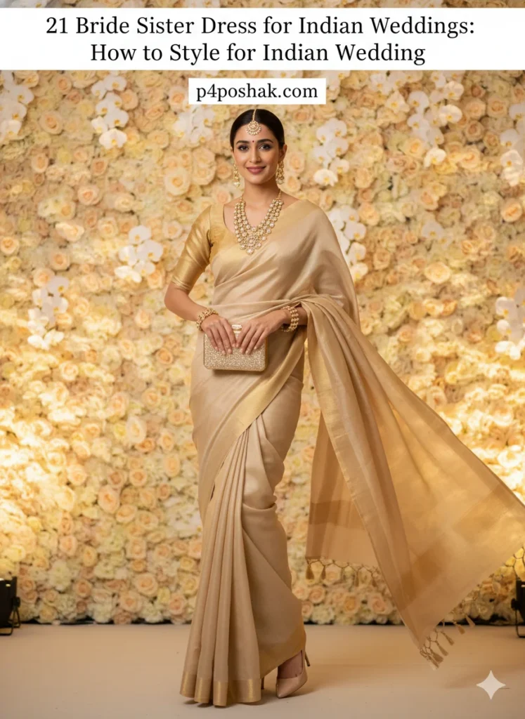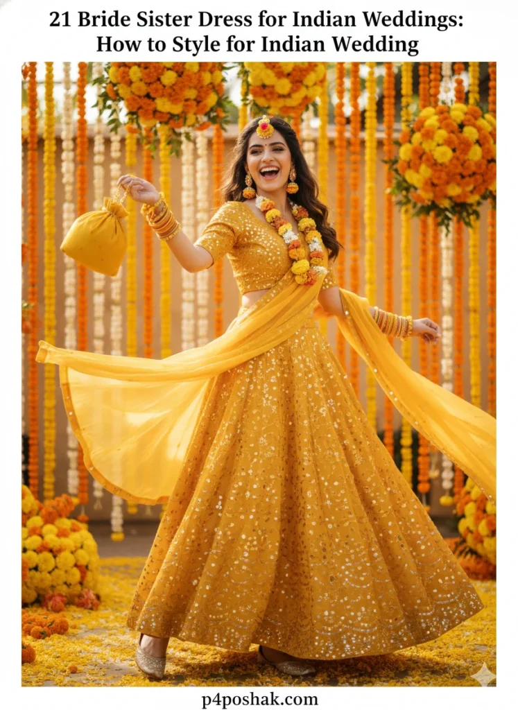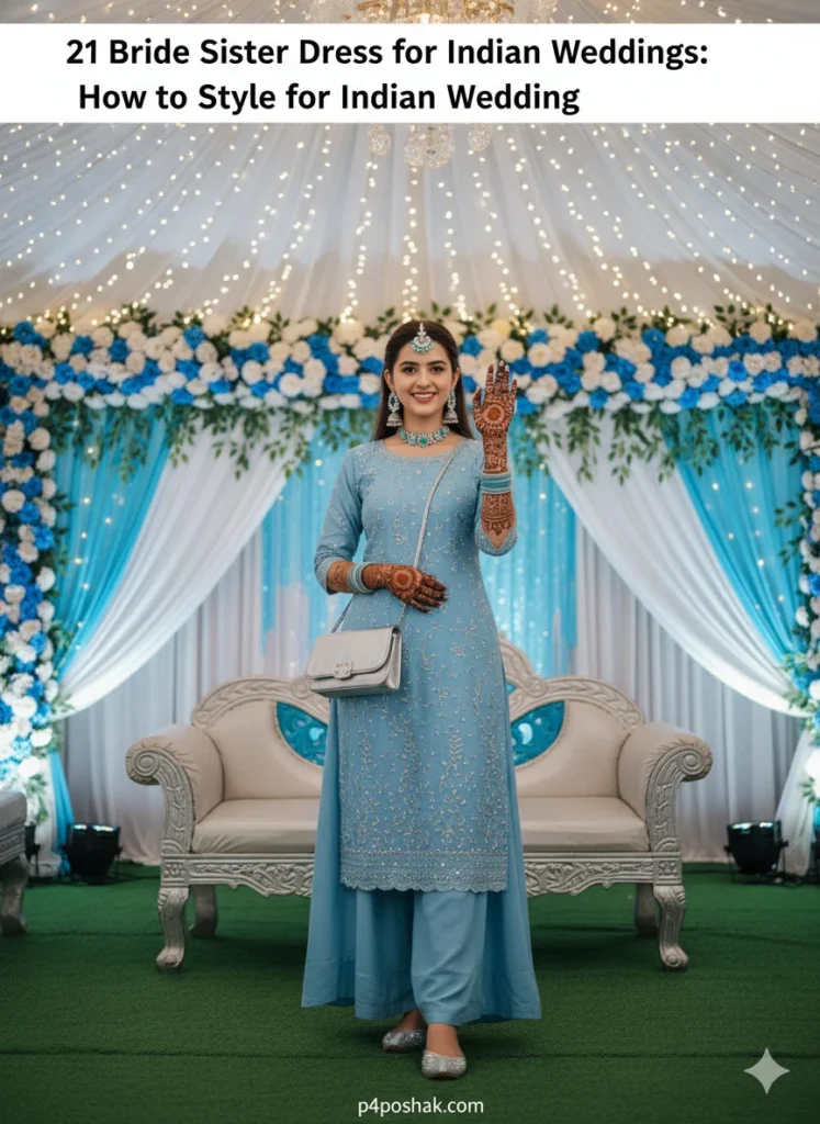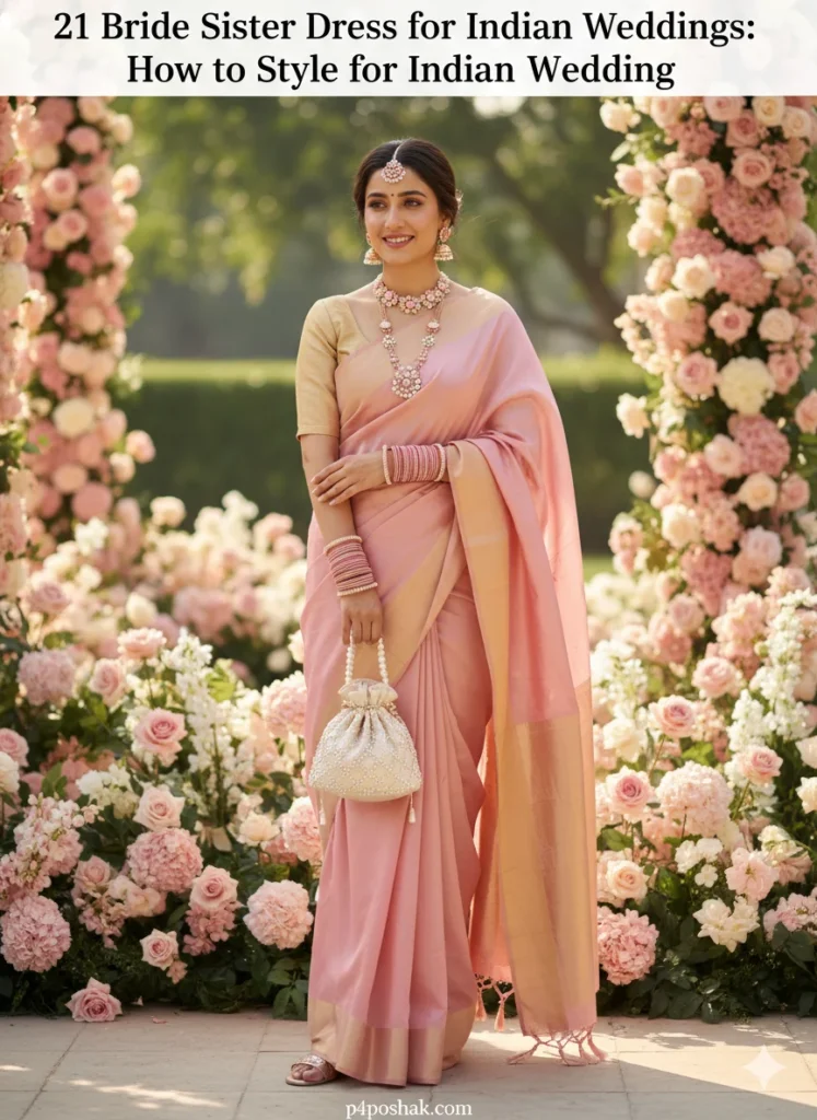 Hi, I’m Dimple Mali, a fashion blogger at P4Poshak. I’ve seen how confusing it can be to pick the right outfit when you’re the bride’s sister. You’re not just a guest — you’re family, the emotional backbone of the wedding, and often the unofficial style icon in all those Instagram photos! 💃