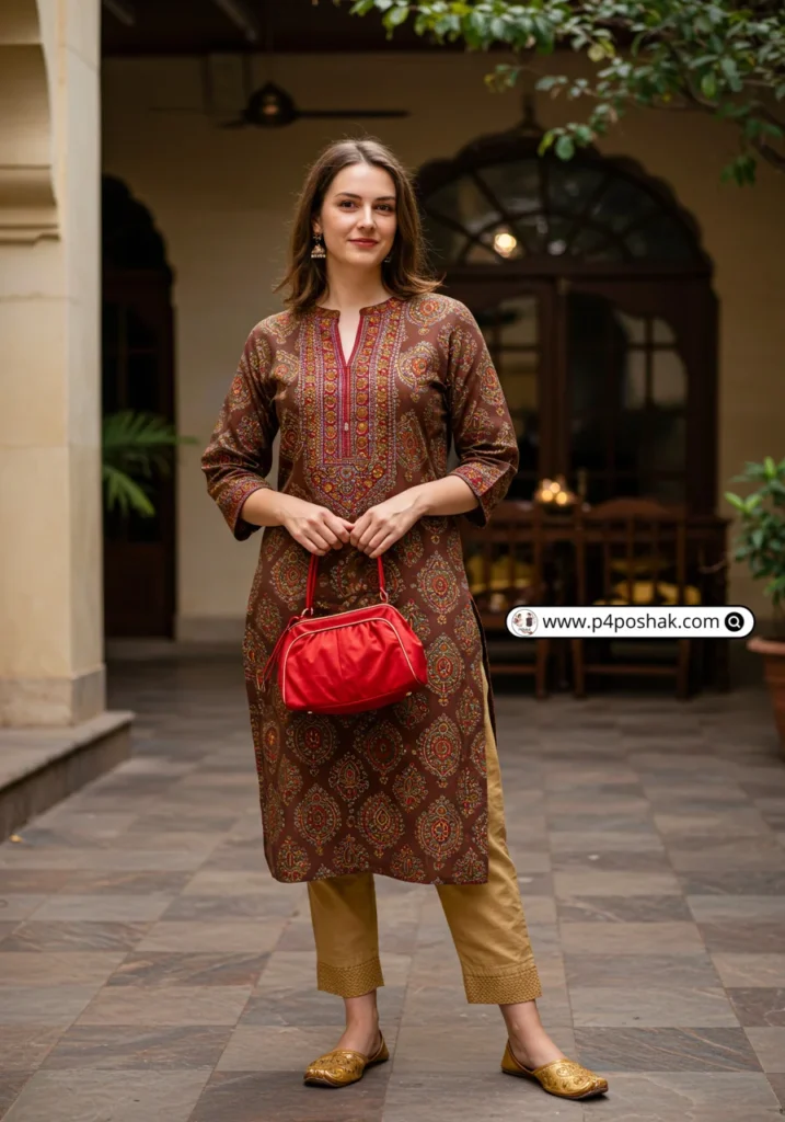Ethnic prints like kalamkari are timeless. A kurta with straight pants in these prints feels earthy and elegant. I wore one at a family puja—it was light to carry and gave a rich, cultured vibe.