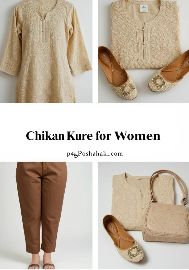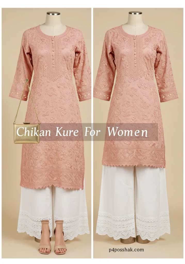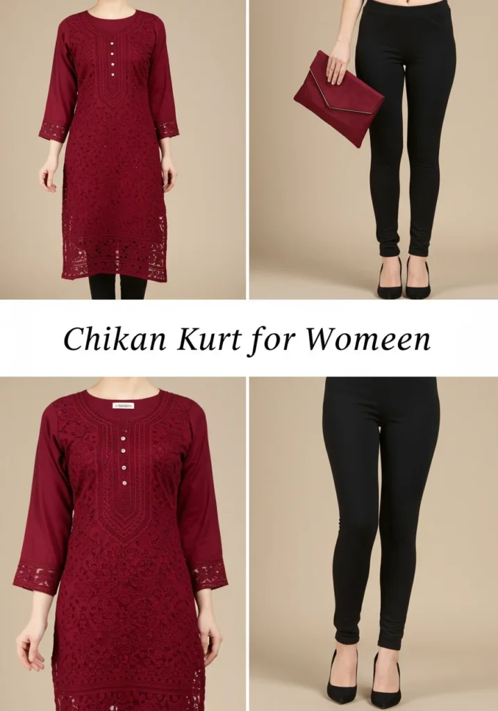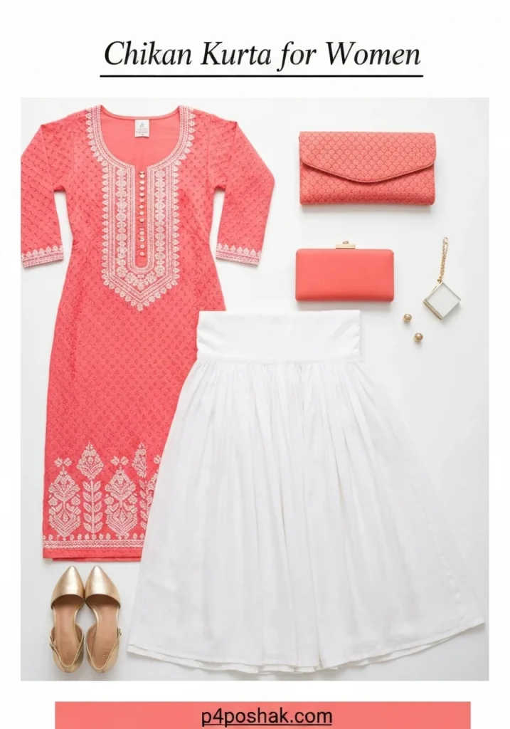 Pairing a short Chikan Kurta for women with jeans is a modern twist on traditional style. It’s perfect for college or coffee dates — comfortable, trendy, and easy to carry. (Author Tip: Roll up the sleeves for a chic Indo-western look!)