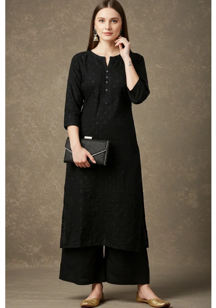 5. Black Straight Chikan Kurti with Palazzos