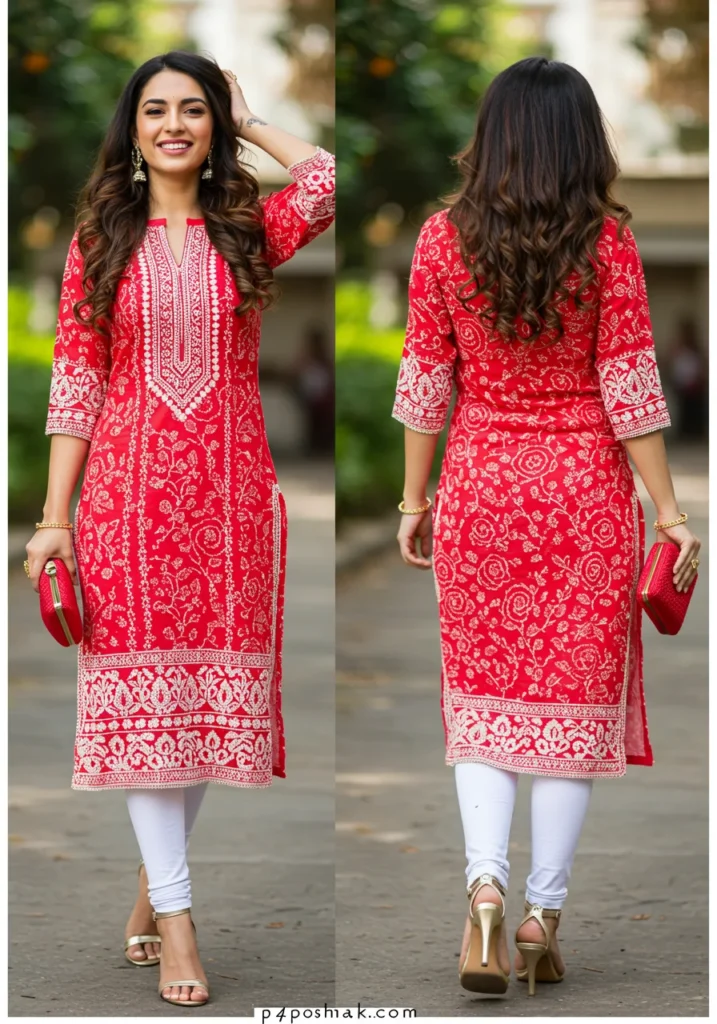 A classic white chikan kurti is a timeless wardrobe essential. Lightweight, breathable, and effortlessly elegant, it’s perfect for daytime events, casual office wear, or festive brunches. (Author Tip: Pair with silver jhumkas to enhance the delicate embroidery.)