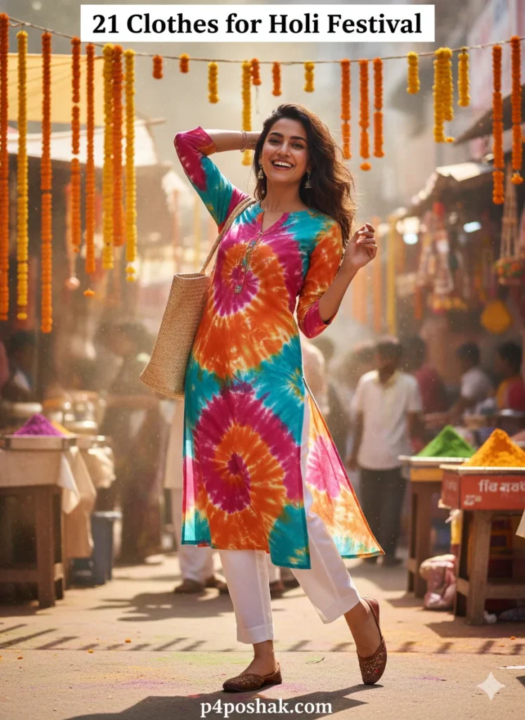 Tie-dye reflects the true spirit of Holi. This outfit remains festive even after playing with colors, making it a smart and practical choice. Textile experts note that printed fabrics hide stains better than solid colors.