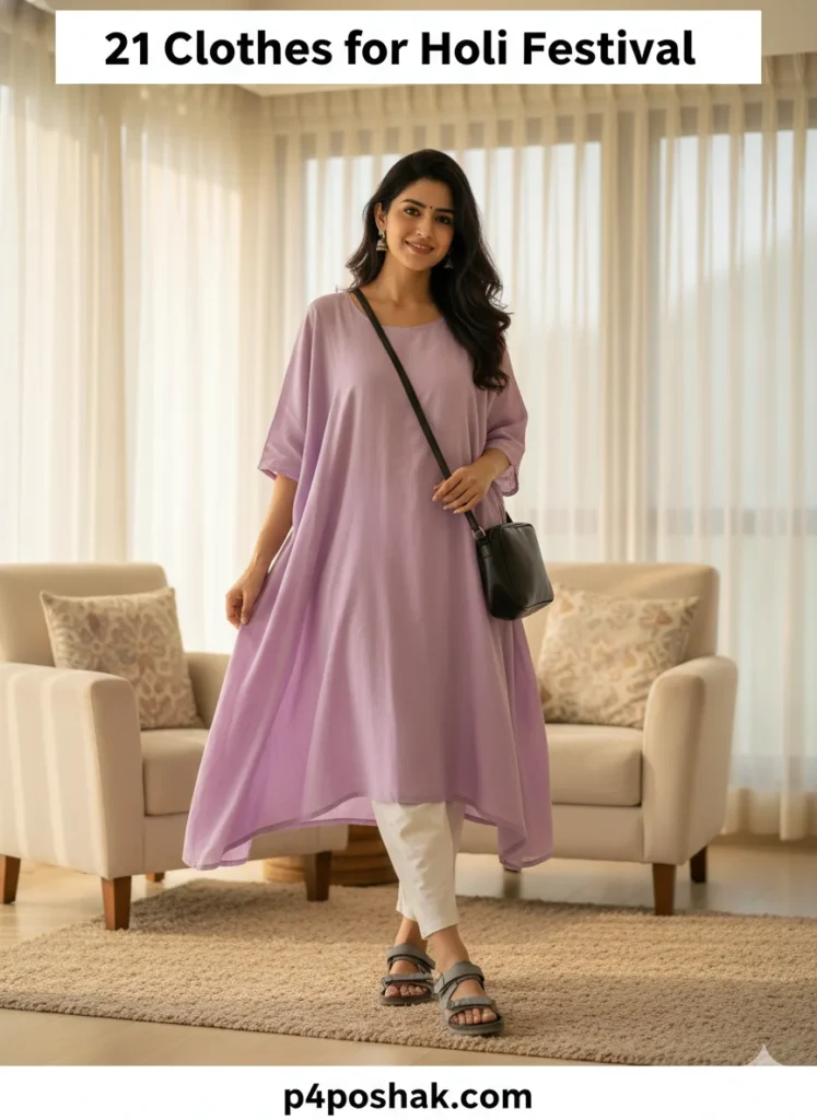 For women who prioritize comfort above all, this outfit works best. Oversized kurtas allow breathability and flexibility. Based on personal styling experience, this is one of the most practical choices for all-day Holi celebrations.