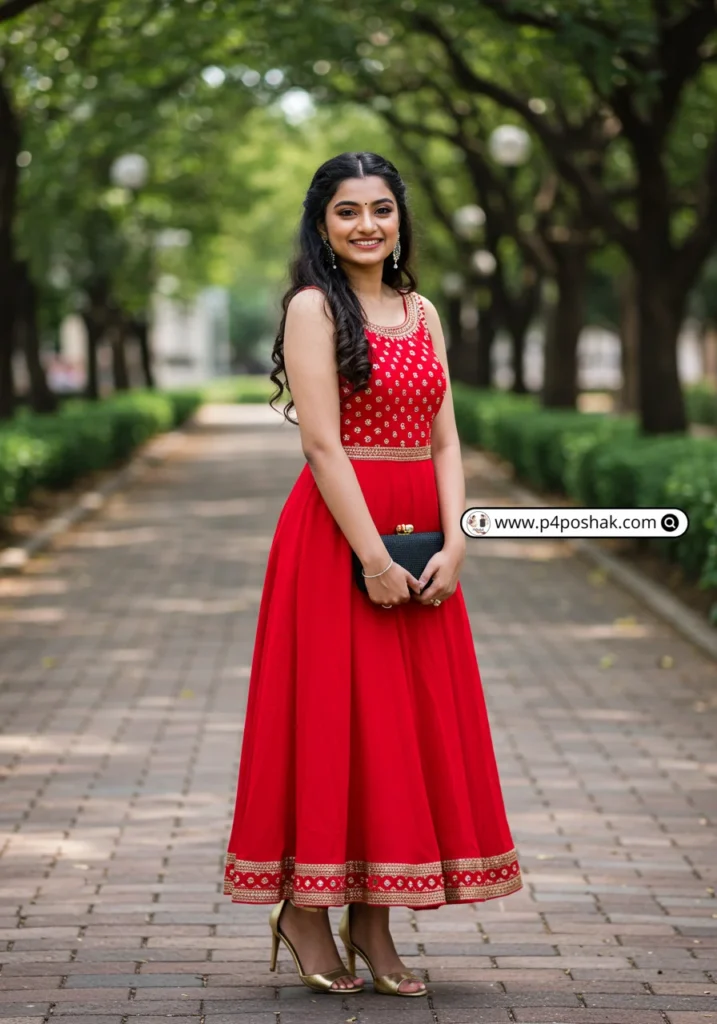 A flowy red gown is bold, dramatic, and perfect for the spotlight. According to Vogue India, red remains one of the most powerful colors for occasion wear. I wore one at my farewell and felt absolutely confident.