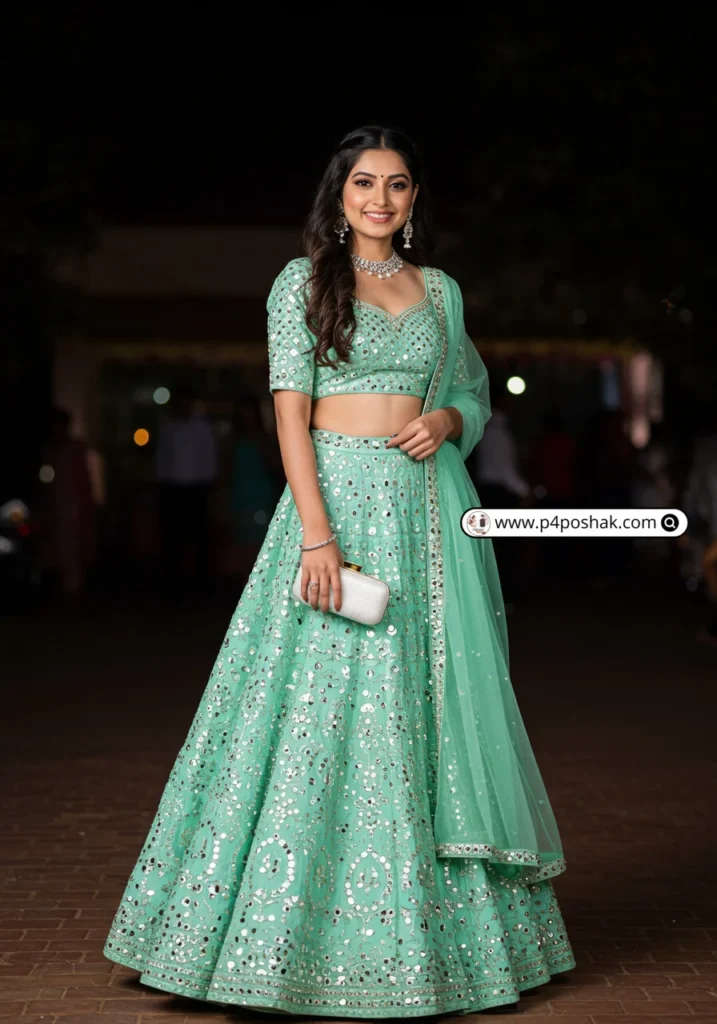 19. Mint Green Lehenga with Mirror Work