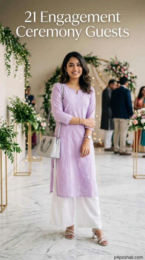 Palazzo sets are known for comfort and effortless elegance. The lavender and white combination feels soft, feminine, and festive. For guests attending long ceremonies, this outfit keeps you stylish while remaining breathable and easy to wear.