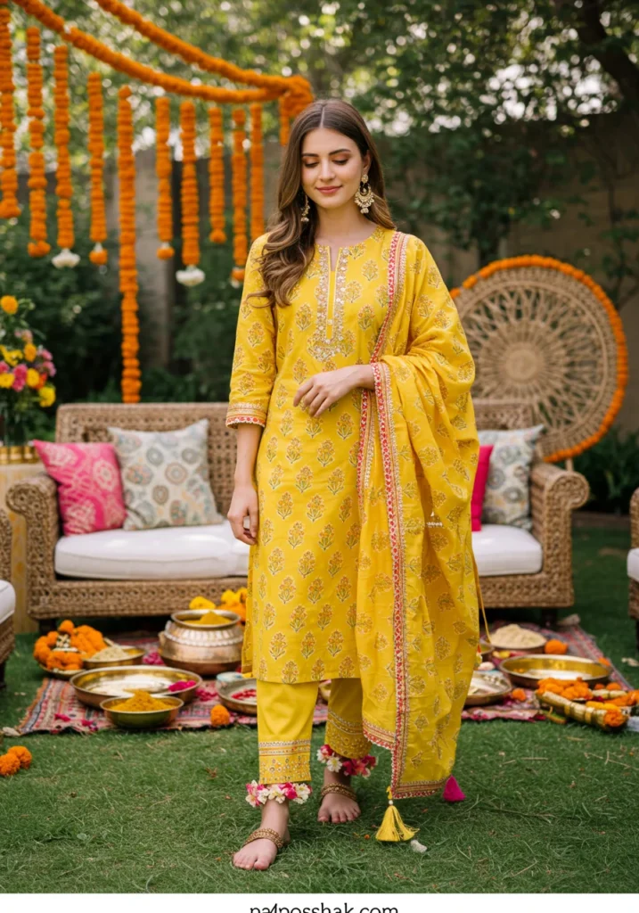 Whether you love classic sarees, flowy lehengas, or breezy kurti sets, these haldi outfits for Guest are thoughtfully curated to suit all body types, age groups, and personal styles.