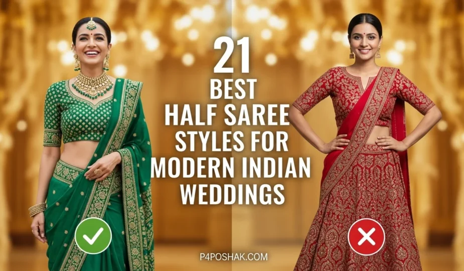 Hi, I’m Dimple Mali, a fashion blogger at P4Poshak, and in today’s post we’re diving into the world of half saree styles that every modern Indian girl should try. Whether you’re attending a wedding, gearing up for your own engagement, or simply want a festive ethnic look, the half saree is versatile, chic, and incredibly flattering.
