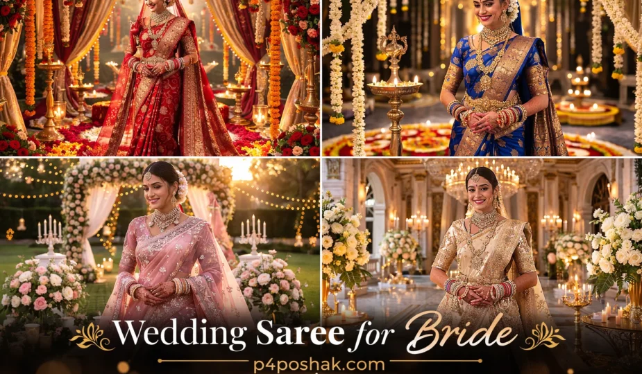 Hi, I’m Dimple Mali, a fashion blogger at P4Poshak. I believe every bride deserves to feel confident, graceful, and absolutely stunning as she walks into her new beginning. Through this post, I’m here to guide you on how to style your bridal saree effortlessly — from selecting the right color and fabric to pairing it with statement jewelry, flattering drapes, and modern styling twists.