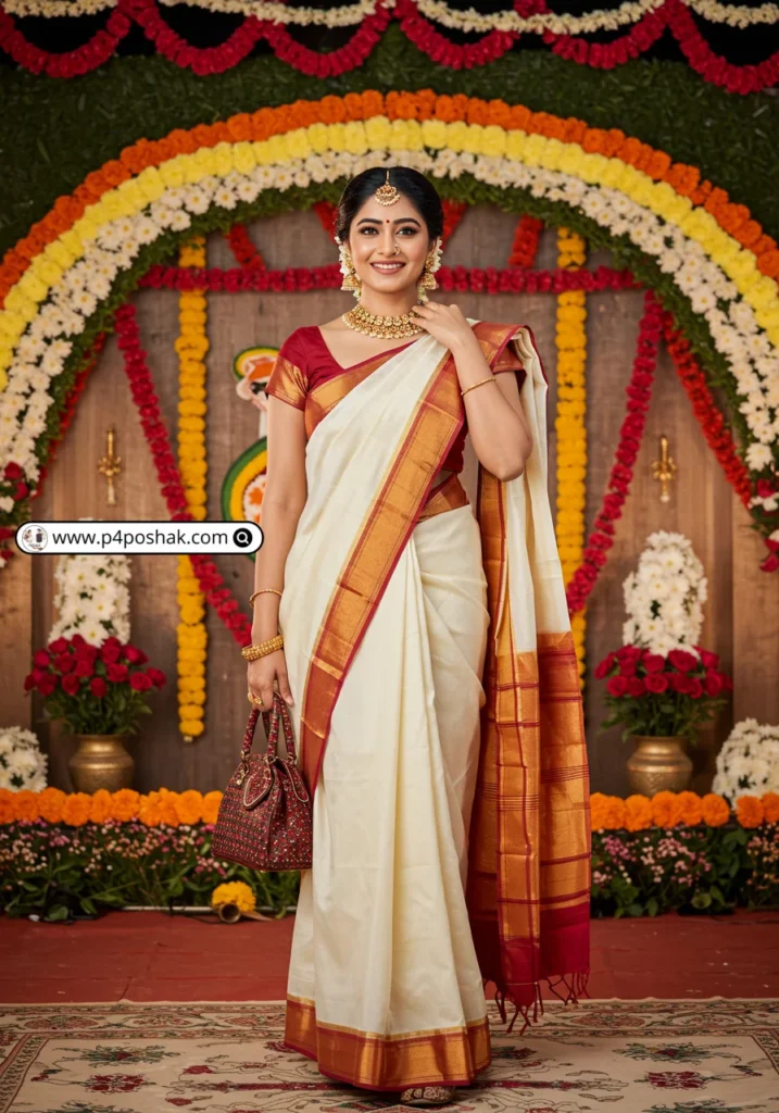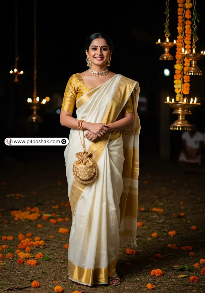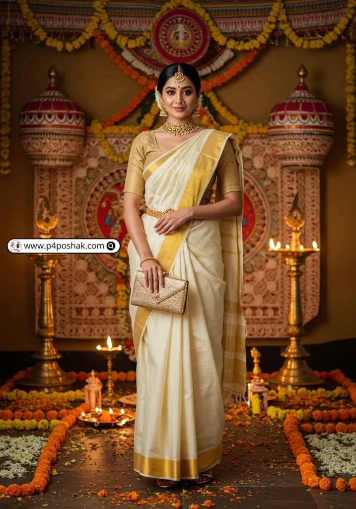 Hi, I’m Dimple Mali, a fashion blogger at P4Poshak, and today I’m taking you through some of the most stunning, modern yet traditional outfit ideas you can flaunt this Onam. From the classic Kasavu saree to fusion Indo-western looks, I’ll share styles that balance elegance with comfort.