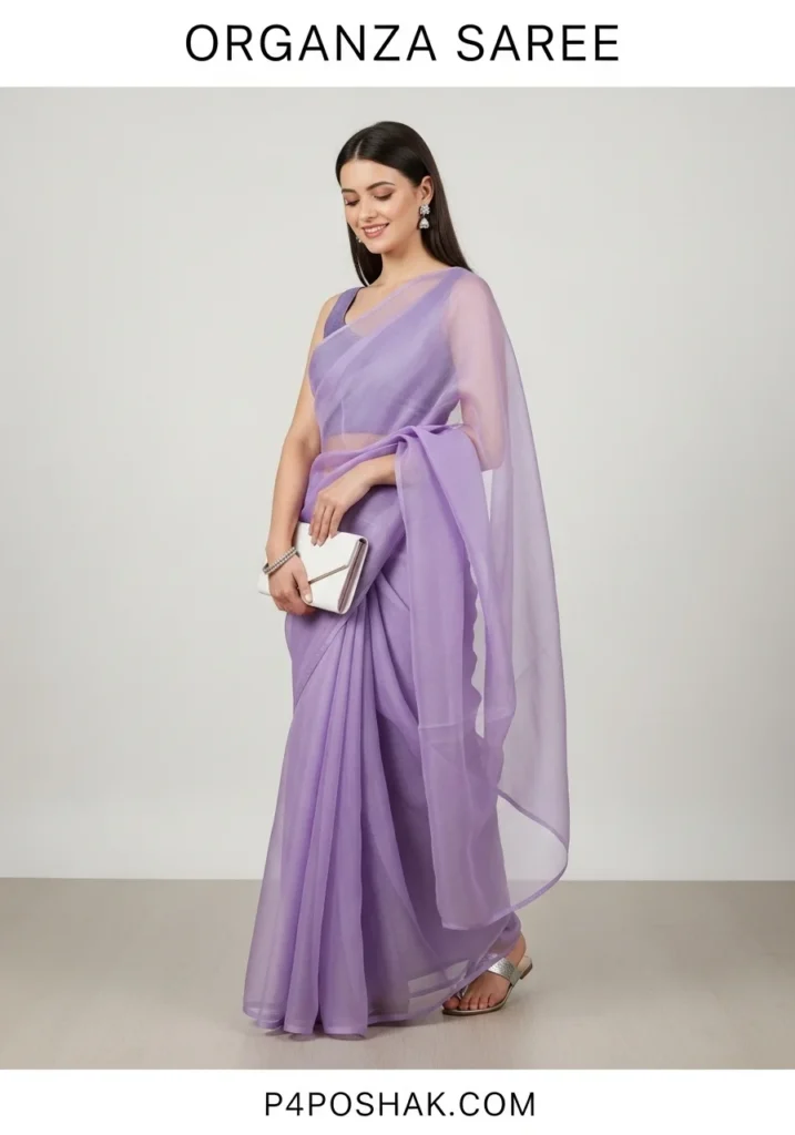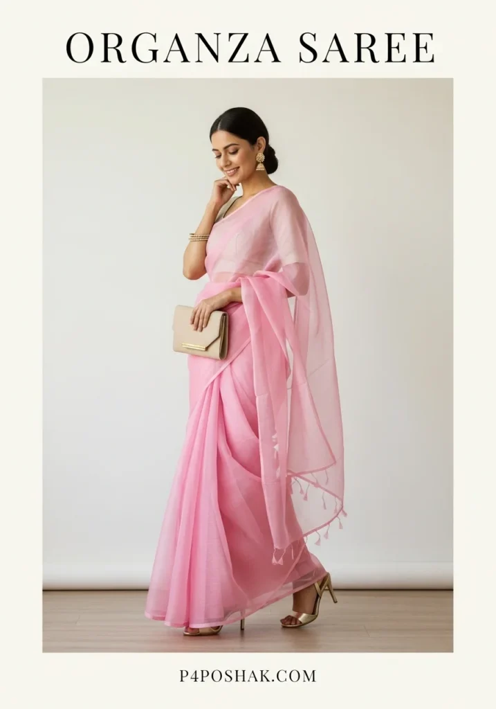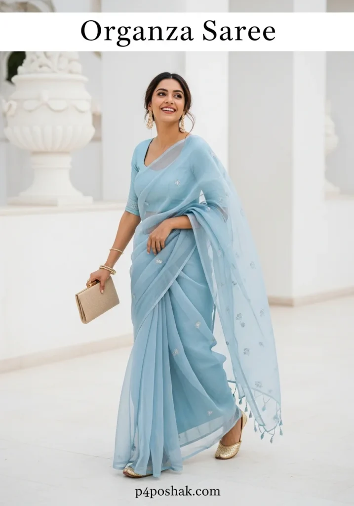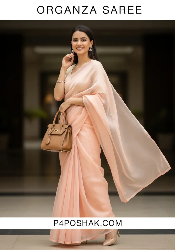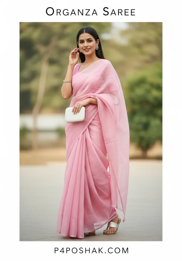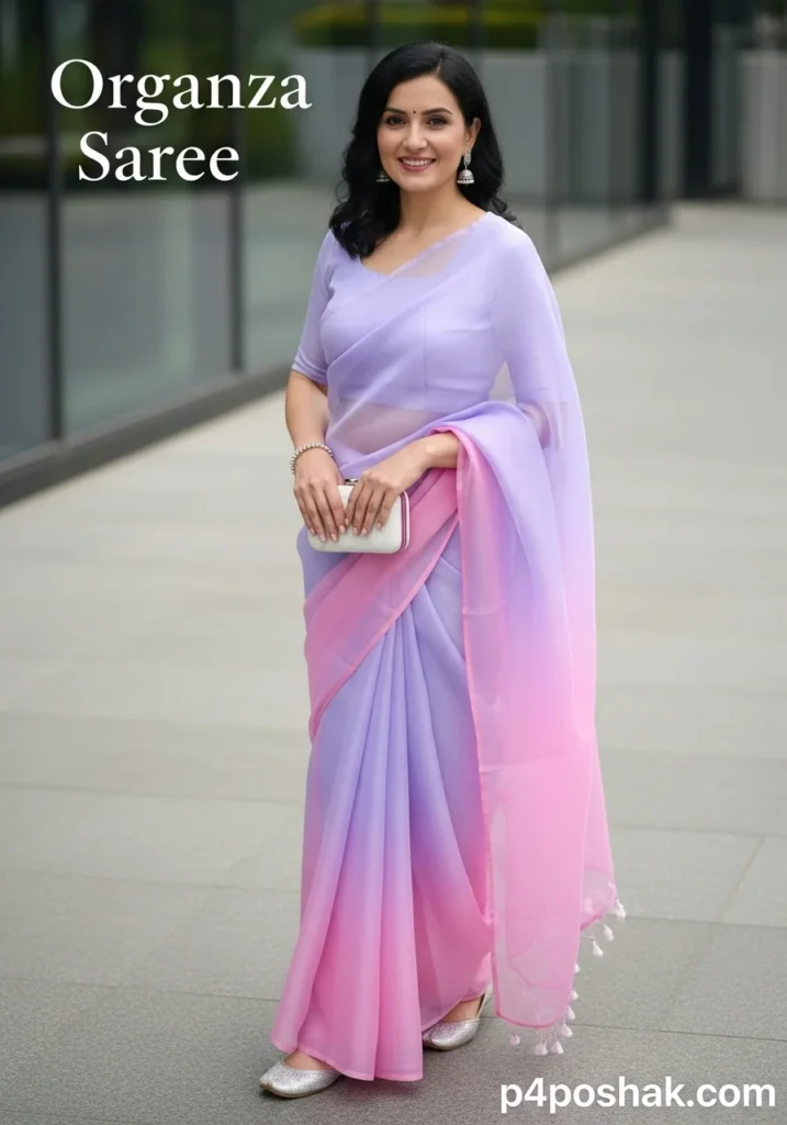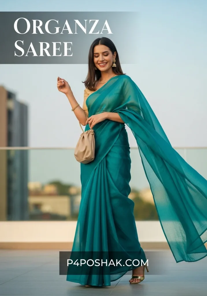 Hi, I’m Dimple Mali, a fashion blogger at P4Poshak! If you’ve ever admired the delicate charm and sheer elegance of Indian ethnic wear, you know that an “organza saree” is more than just a garment—it’s a statement of grace, sophistication, and timeless beauty.