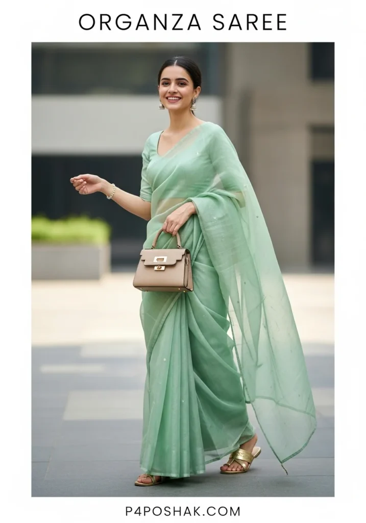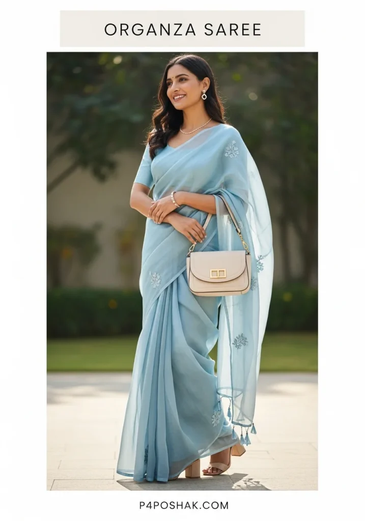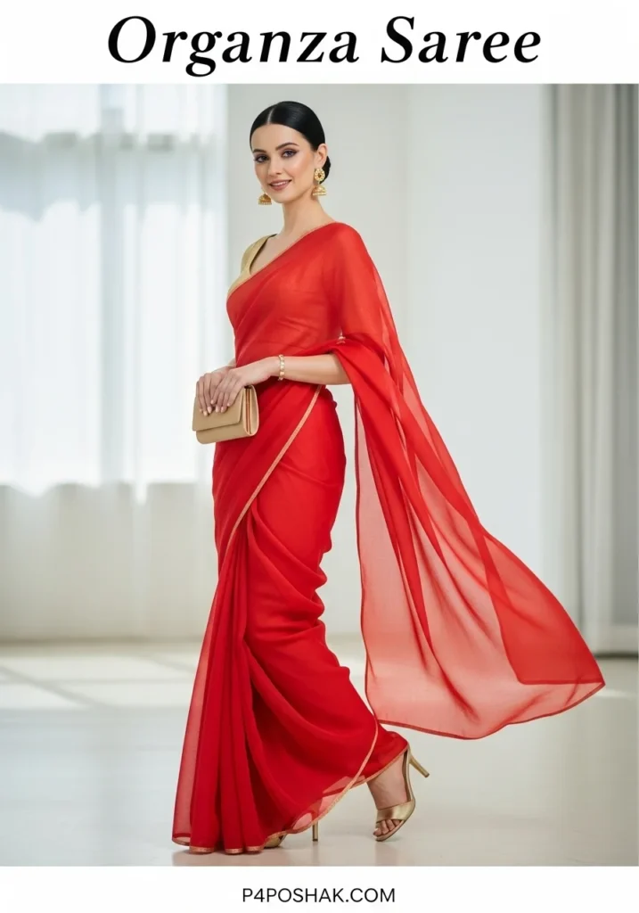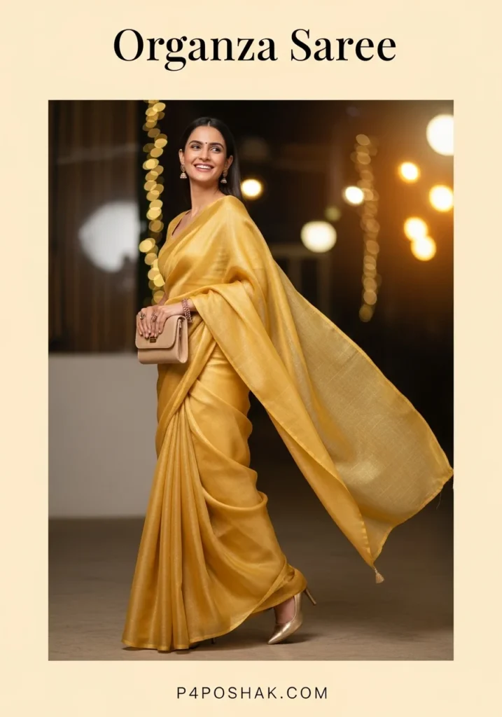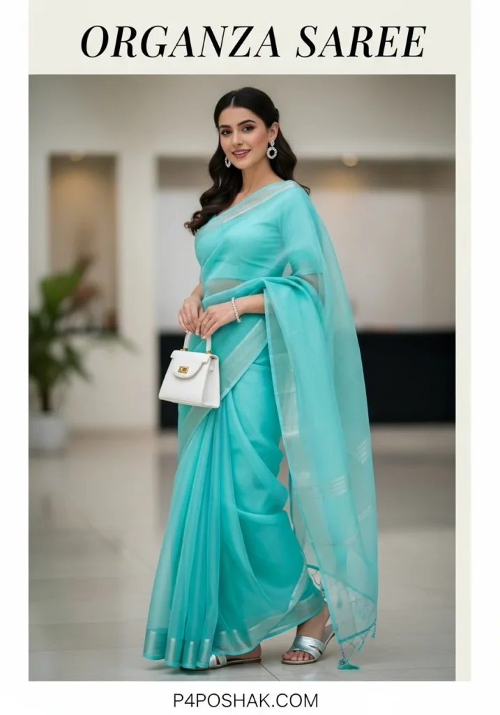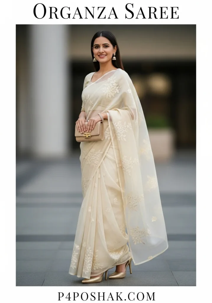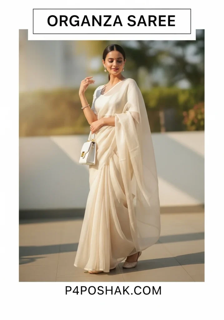 Hi, I’m Dimple Mali, a fashion blogger at P4Poshak! If you’ve ever admired the delicate charm and sheer elegance of Indian ethnic wear, you know that an “organza saree” is more than just a garment—it’s a statement of grace, sophistication, and timeless beauty.