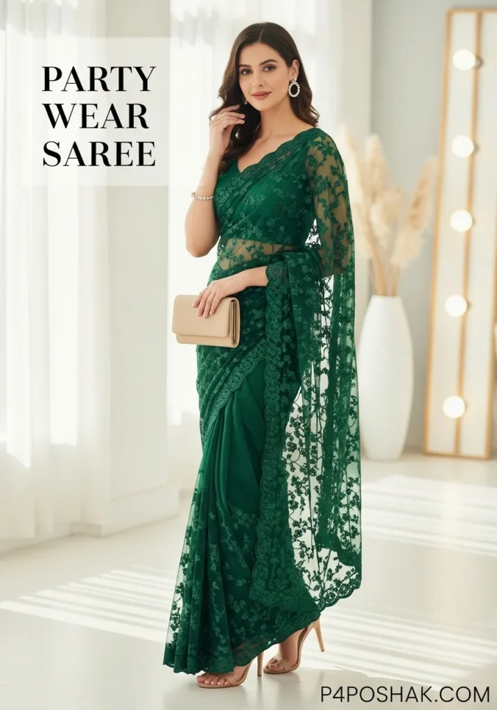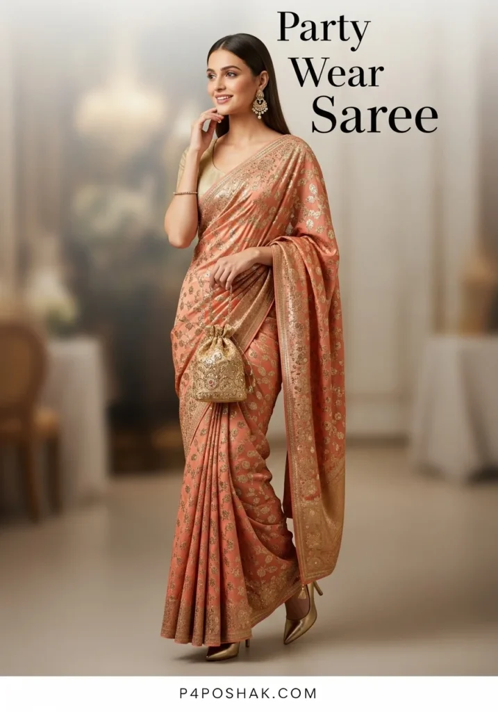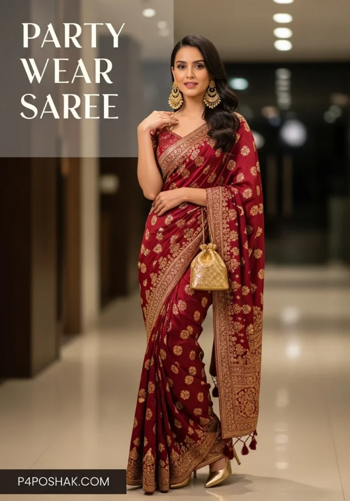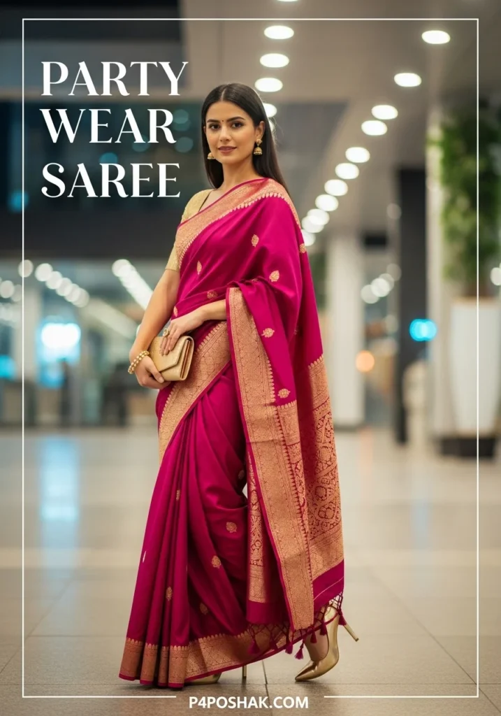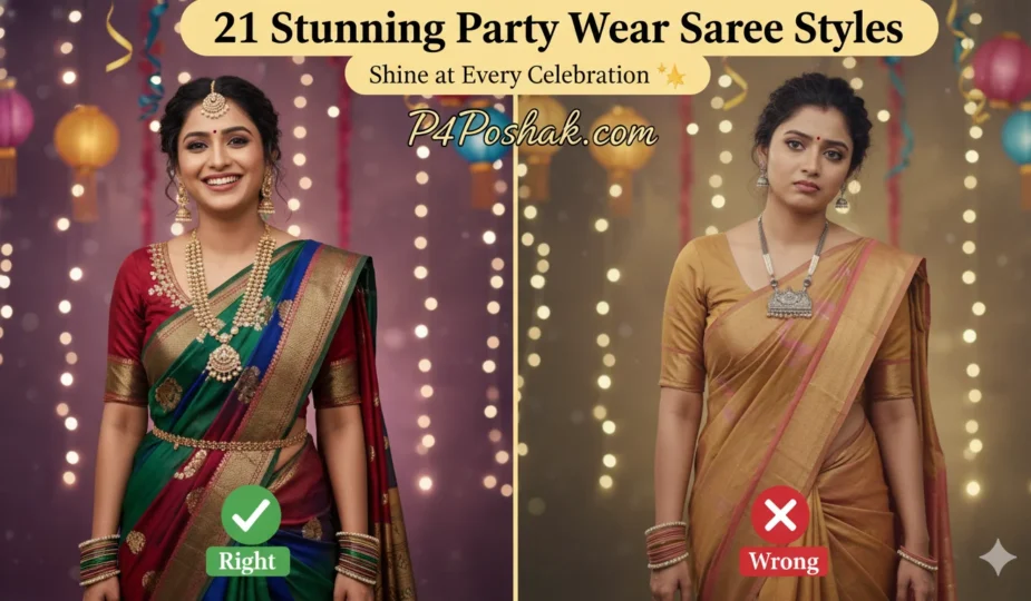Hi, I’m Dimple Mali, a fashion blogger at P4Poshak! If you’ve ever stood in front of your wardrobe wondering, “What saree will make me look effortlessly glamorous tonight?”, you’re not alone. The perfect “party wear saree” has the power to turn any evening into a celebration of style, confidence, and elegance.