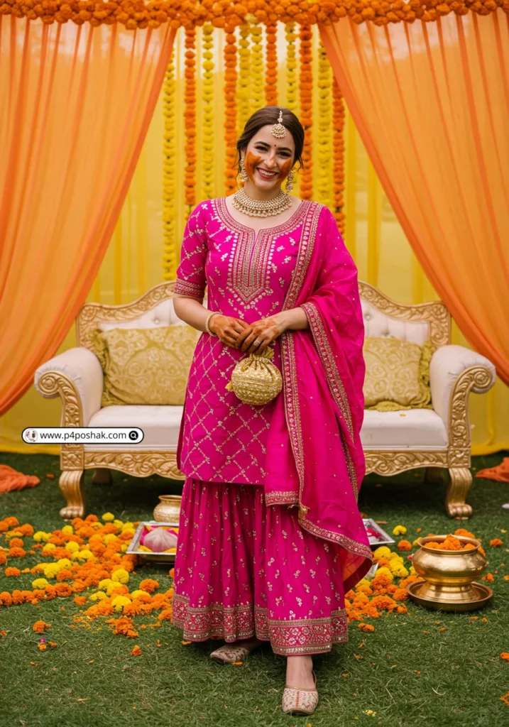 16. Fuchsia Pink Sharara Suit for Haldi or Mehendi