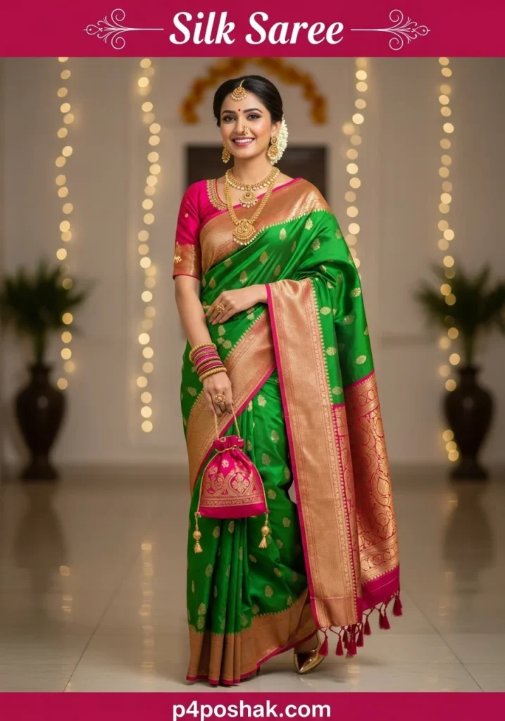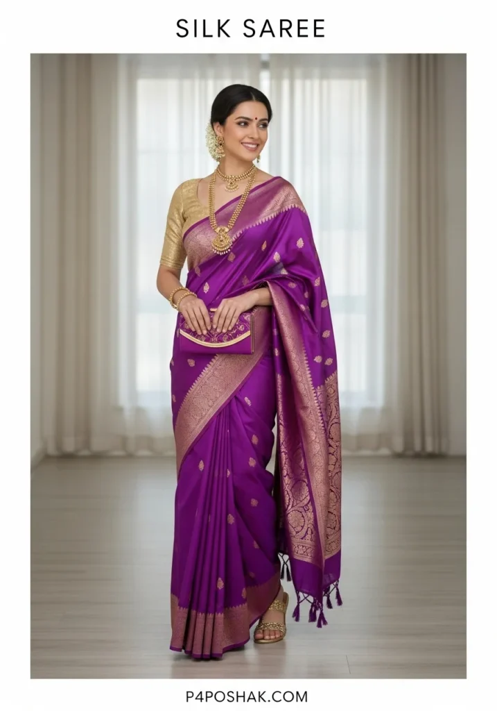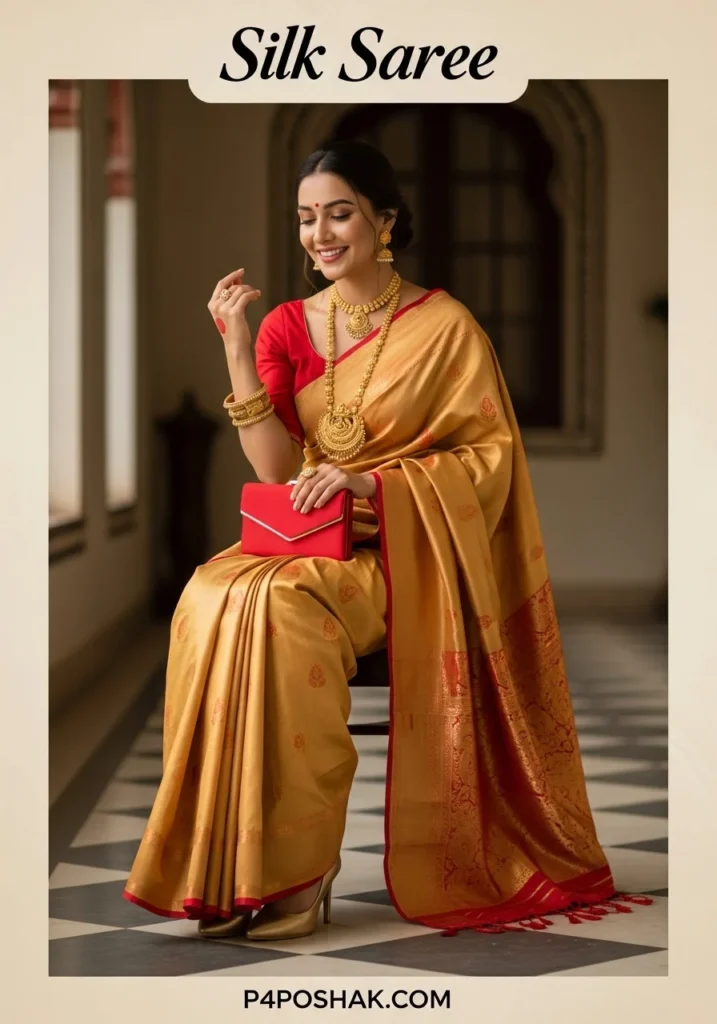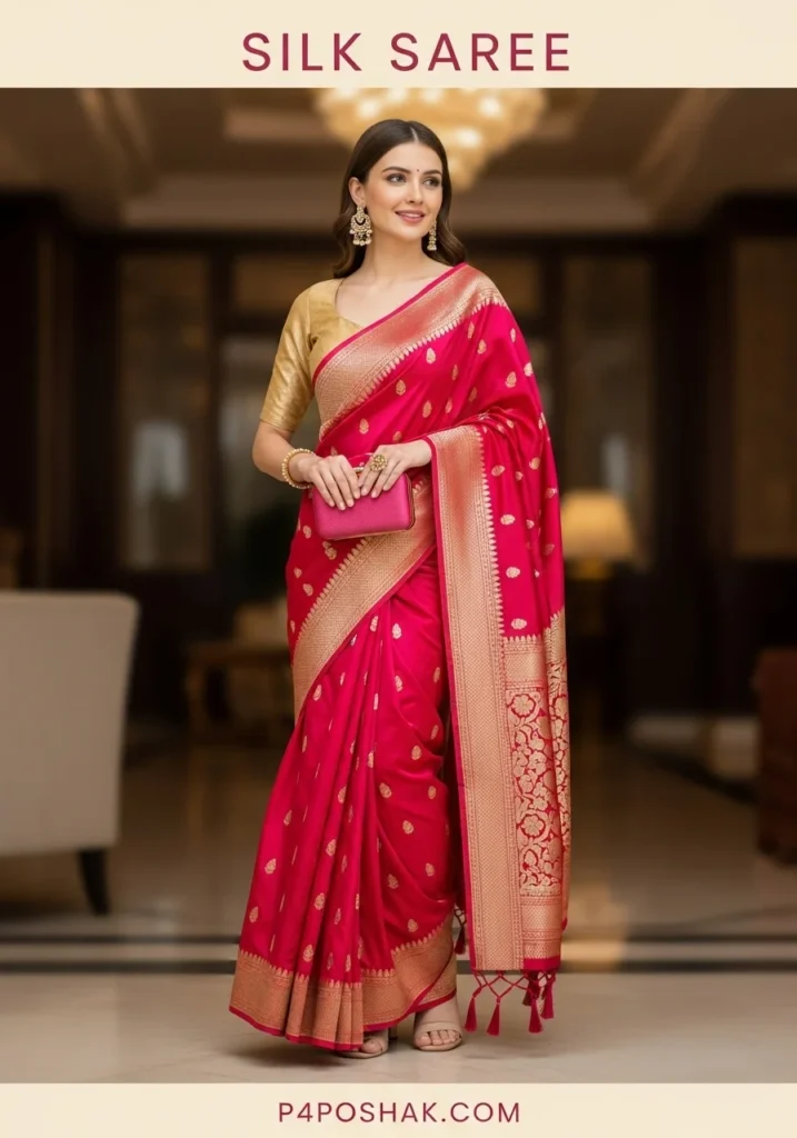 Hi, I’m Dimple Mali, a passionate fashion blogger at P4Poshak, and I truly believe that a woman’s wardrobe is incomplete without a silk saree that makes her feel powerful and graceful at the same time. Whether it’s a wedding, festive gathering, or cultural event, the silk saree remains the ultimate symbol of sophistication in Indian fashion.