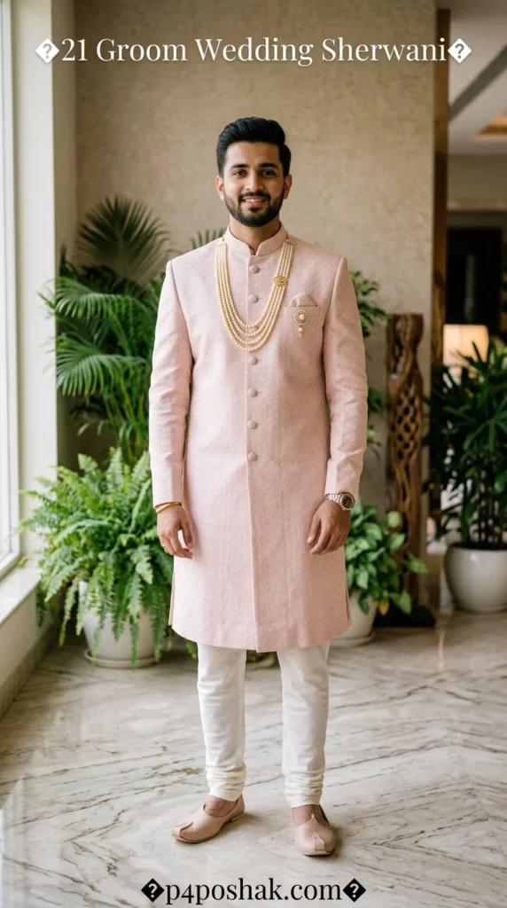 Pastel sherwanis have become extremely popular for daytime weddings and destination ceremonies. The light shade creates a refreshing look while minimal embroidery keeps the outfit elegant and comfortable throughout long wedding rituals.
