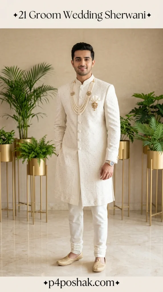 19. Celebrity Inspired Ivory Wedding Sherwani