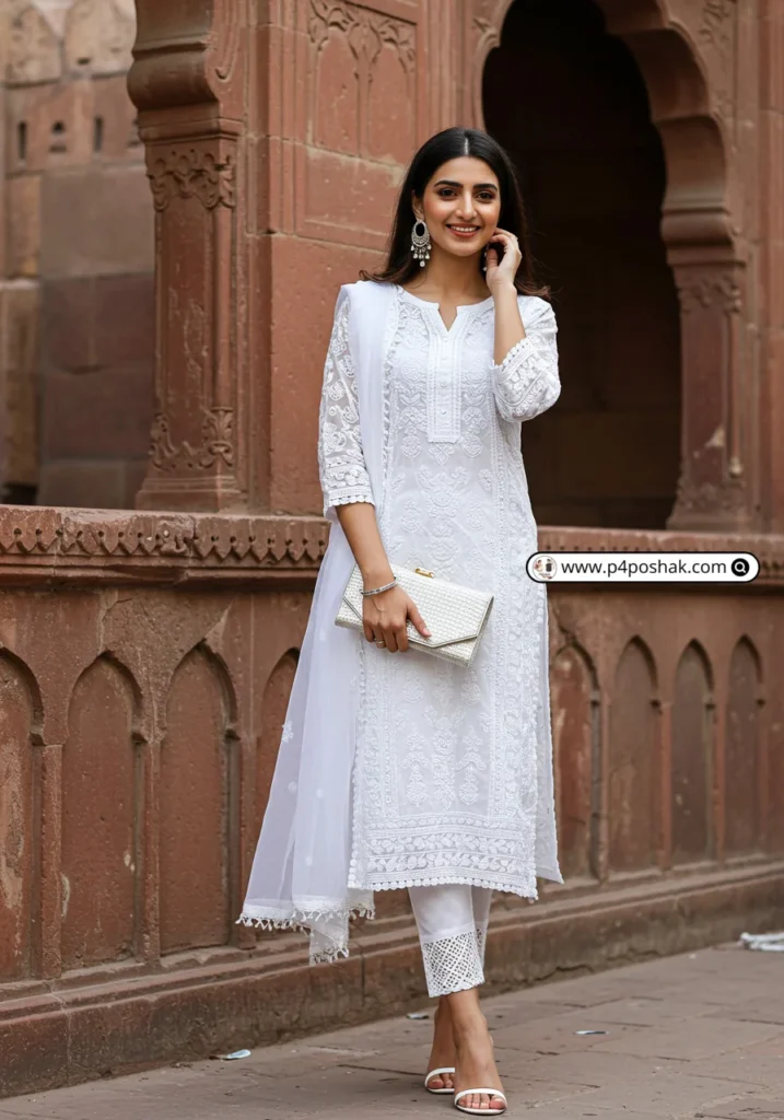 Elevate your style with the timeless charm of a white chikankari kurti. Known for its intricate hand-embroidery, this kurti is perfect for casual brunches, festive events, or semi-formal gatherings. Hi, I’m Dimple Mali, your fashion guide at P4Poshak, and here are 21 stunning white chikankari kurti styles that will make your wardrobe pop.
